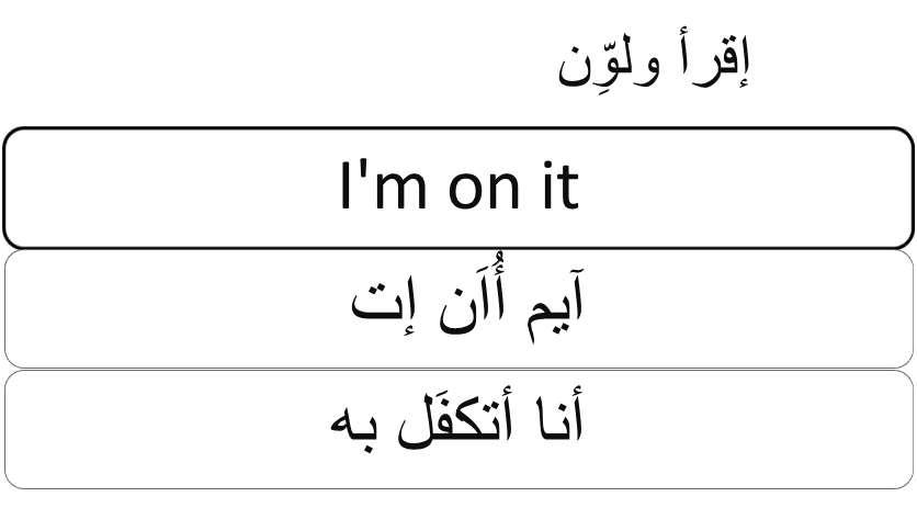 I’m on it I’m on it آيم أُاَن إت أنا متكفل بالأمر / سأفعلها Continue reading Categories: Key Terms (من أهم الكلام)
