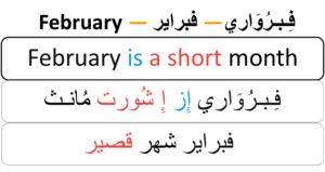 February is a short month — فِـبـرُوَاري إِز إِ شُورت مُانـث — فبراير شهر قصير