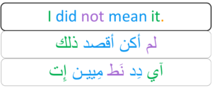 فقط أنظر لهذا المثال I did not mean it. ثم، اقرأ المعنى بالعربي I did not mean it. لم أكن أقصد ذلك الان، اقرأ اللفظ بالعربي . I did not mean it. آي دِد نَط مِييـن إِت لِتسمع نُطق ولفظ جملة الإنجليزي، ظللها، ثم اضغط على زر السماعة I did not mean it. Categories: Apology (اعتذار)
