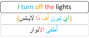 I turn off the lights — (آي تِيرن أُف ذا لَايـتس) — أُطفئ الأنوار