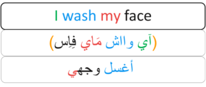 I wash my face — (آي وااش مَاي فِاِس) — أغسل وجهي