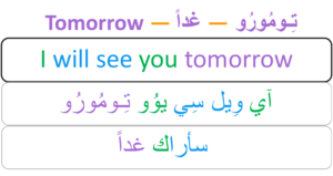 I will see you tomorrow — آي وِيل سِي يوُو تِـومُورُو — سأراك غداً