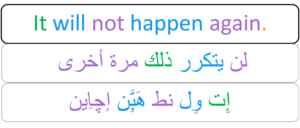 It won’t happen again. لن يتكرر ذلك مرة أخرى