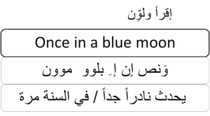 Once in a blue moon – وَنص إن إ ِ بلوو  موون – يحدث نادراً جداً / في السنة مرة