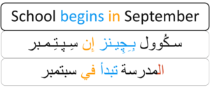 School begins in September — سـكُوول بِـِچِيـنز إِن سِـپـتِـمـبر — المدرسة تبدأ في سبتمبر